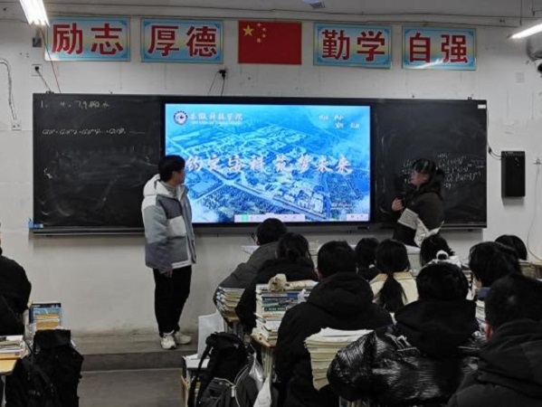 2月4日,动物医学214班刘晗和团队两名成员来到母校涡阳县育萃高级中学,开展主题为“情系母校,助梦安科”的宣讲汇报活动。宣讲前,团队成员联系了高中班主任介绍了学校基本情况,高中老师对我校的办学成就、师资力量、学科建设、综合实力等方面表示高度认可。随后,团队成员走进班级,向学弟学妹介绍我校,以亲身经历分享了自己在高考备考期间的努力和坚持,以及在大学里如何通过不断学习和实践提升自己的综合素质,让更多高中学子了解我校的内涵和魅力。