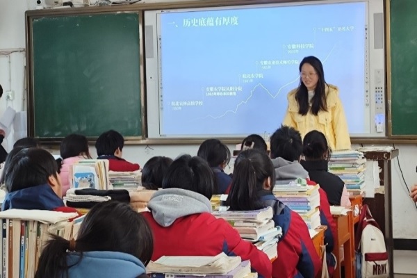 动物科学212班刘晓蝶、动物医学214班王露、动植物检疫221班徐匡佐、动植物检疫222班吴雅婷带领的实践团队分别赴滁州市的三所学校开展社会实践活动。活动中,实践团队成员们向高中的学弟学妹们分享了大学期间的成长历程以及专业学习情况,并结合大学校园生活,围绕学校概况、学科建设、校园生活以及学校未来发展全方位宣传介绍了乐动网页版登录入口_乐动网页版(中国),激发了高中学子们对我校的浓厚兴趣。