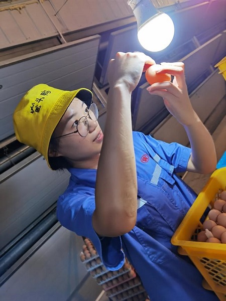 在种鸡场的生活于我来说总体是快乐而充实的,对工作的内容已经很熟悉了,对生产管理有了自己的见解,对这里的同事们也有了熟悉和亲切感。每天看着小鸡欢快的吃饭,下蛋真的很治愈,每当活胚率有所提高我们都会很兴奋,对于我们来说,一筐筐的送孵蛋就是我们的劳动成果。对于未来,我相信我一定会学有所用,在不断的训练中,协助完成好六方场的生产,积极迎接未知的挑战。(特约通讯员:李焱 审核:汤帅)