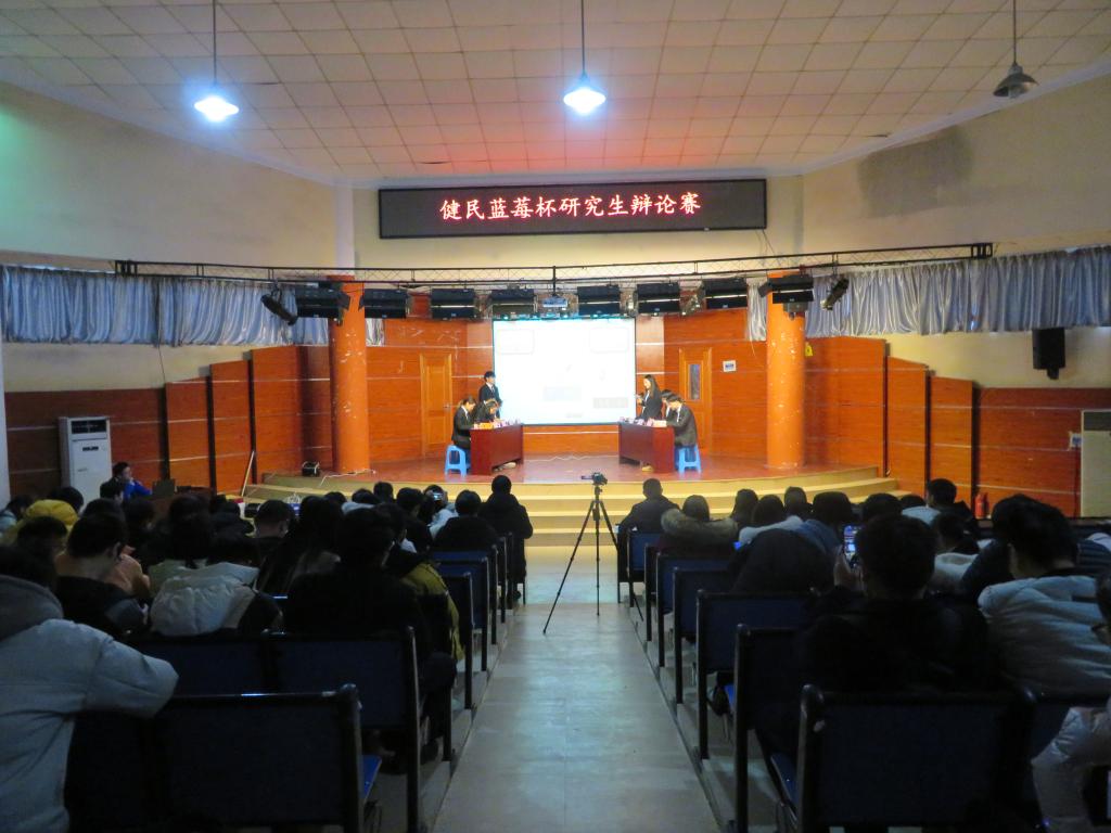 1月3日,由研究生处主办的“健民蓝莓杯”我校首届研究生学术辩论赛在老学术报告厅举行。本次学术辩论赛围绕十九大提出的“乡村振兴”战略,结合《农业创新与乡村振兴》课程开展选题。资源与环境学院汪建飞教授、管理学院胡月英教授、人文学院姚大怀副教授、管理学院刘宗飞博士、校团委秘书张成孜老师应邀担任评委。全体2018、2019级研究生观摩赛事。