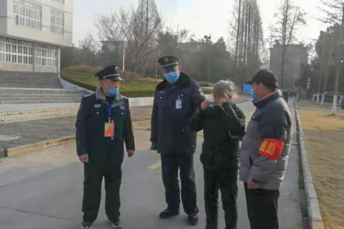强化校园管控。坚持24小时值班值守,保卫干部职工连续多日奋战在工作一线,从严从细抓落实,严格执行校园封闭式防控要求,依法依规开展大门管控和体温检测工作,禁止外来人员和车辆进入校园,制作发放教职工家庭采购物资出入证,严格证件核查限时进出校园,对进入校园人员做好登记逢人必检,坚决阻断潜在传染源。在做好校门管控的同时,积极宣传防疫安全知识,不厌其烦地提醒教职工“戴口罩、少出入。”