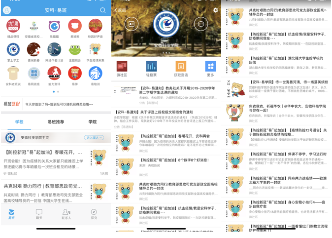 发挥网文及新媒体产品思政功能。制作《你农我农,祈福华农》《白衣战士》等原创帖讲述安科人在这场抗击疫情大战里的暖心故事和美好祝愿。发动辅导员利用挥易班博文功能,围绕爱国主义教育、生命教育、社会责任感教育、规则教育、爱与感恩教育等积极撰写网文。制作《抗击肺炎武汉加油、湖北加油》《辅导员喊你停课不停学》等短视频,积极宣传好新时代青年众志成城、扶危济困、无惧无畏、乐观向上的精神。