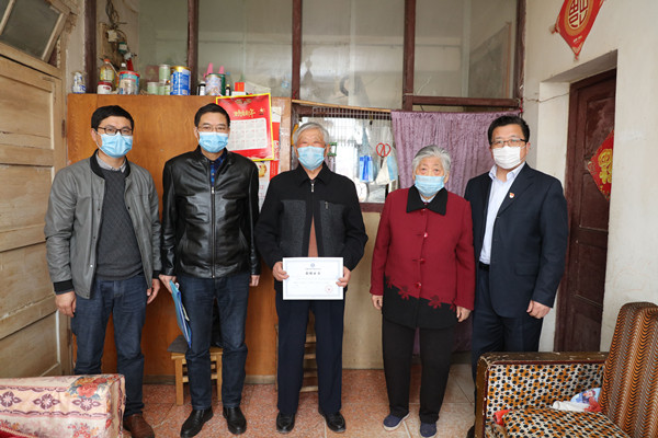黄老夫妇亲自到路口迎接卫胜一行,热情地接待了大家。寒暄过后,宾客像故人般聊起了家常。卫胜向黄老夫妇送上了母校真诚的祝福,通报了近几年母校的发展情况和取得的辉煌成就,简要介绍了母校迎接建校70周年校庆的筹备情况,汇报了龙湖校区建设及校史馆建设等工作。