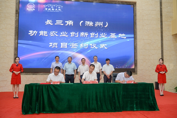 6月28日,长三角(滁州)功能农业创新创业基地项目签约暨中国功能农业协同创新基地开工仪式在滁州高教科创管理服务中心举行,标志着我国首个功能农业双创基地正式落户滁州。我校党委副书记、校长李震,党委委员、副校长李升和,资源与环境学院院长肖新、科研处副处长鲍方印应邀出席。滁州市副市长姚志,南谯区委副书记、滁州高教科创管理服务中心主任张秀山,南谯区副区长盛恩彬,国际硒研究学会副主席、滁州功能农业科技园首席科学家尹雪斌博士,以及滁州市、区相关部门负责人员等出席活动。