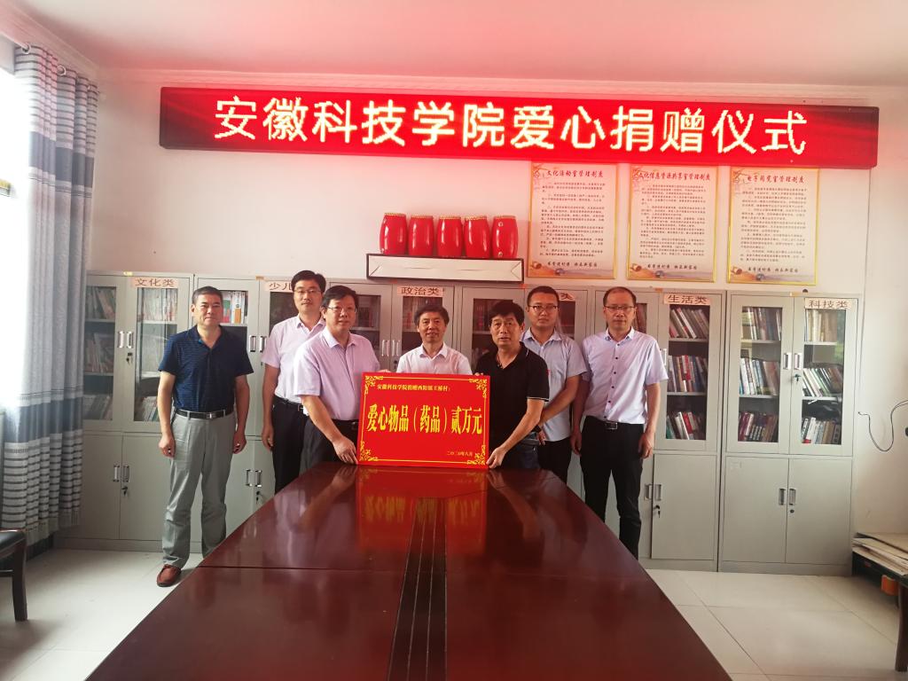 党课结束后,蒋德勤主持召开驻村帮扶工作调研座谈会。西阳镇副镇长史卫国、王桥村党委书记王杰、副书记王伟以及王桥村党员代表、贫困户代表共七名同志参加座谈并发言,他们纷纷表示,我校历任帮扶干部表现优秀、实绩突出,为王桥村建设发展做了大量工作,得到地方党委政府和群众的充分认可。蒋德勤认真听取参会人员对我校帮扶责任落实、选派帮扶干部到村任职工作现实表现等情况介绍和有关工作的意见建议,对工作队取得成绩给予充分肯定,并就下一阶段如何进一步认真落实好各项脱贫攻坚任务、建设好村党组织、发挥好党员作用以及持续做好乡村振兴有效衔接等驻村帮扶工作提出了明确要求。座谈会结束后,蒋德勤代表学校向王桥村捐赠价值2万元的爱心物品(药品),王杰代表村接受捐赠。
