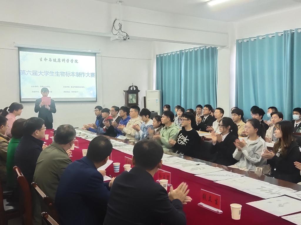 10月24日,2021年安徽省大学生生物标本制作大赛校内选拔赛在生命与健康科学学院会议室成功举办。本次大赛由乐动网页版登录入口_乐动网页版(中国)教务处、创新创业学院主办,生命与健康科学学院承办。皖西学院刘昌利教授,蚌埠医学院吴华彰教授,我校教务处副处长、创新创业学院副院长高青海教授,我校生命与健康科学学院鲍方印教授、王玉良教授,担任本次比赛的评委。学院党委副书记、副院长(主持工作)孙玉军,副院长陈浩、钱立生参加本次活动。比赛由生命与健康科学学院学生会查道军同学主持。