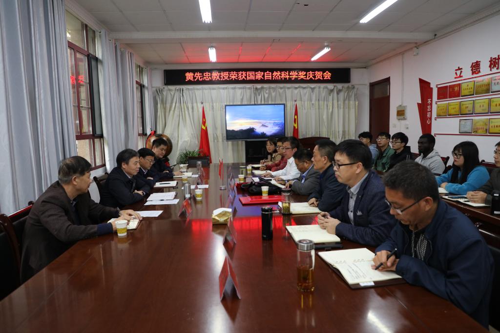 蒋德勤首先代表学校党委、行政对黄先忠教授获得国家自然科学奖二等奖表示祝贺,高度评价获奖项目团队,认为这是项目团队勤勉努力、热衷科研、充满报国理想并付之行动的结果。蒋德勤回顾了黄先忠教授来校工作的三年间,在教学、科研和担任作物学学科带头人等方面所做的工作,认为黄先忠教授专注学术、治学严谨、工作投入、敢于担当、为人师表,是全校教职员工的楷模。他希望黄先忠及其团队继续凝神聚力做科研,积极开展农业科技创新,为学校事业发展做出新的贡献。同时希望学校相关部门、农学院进一步支持团队和作物学学科发展。