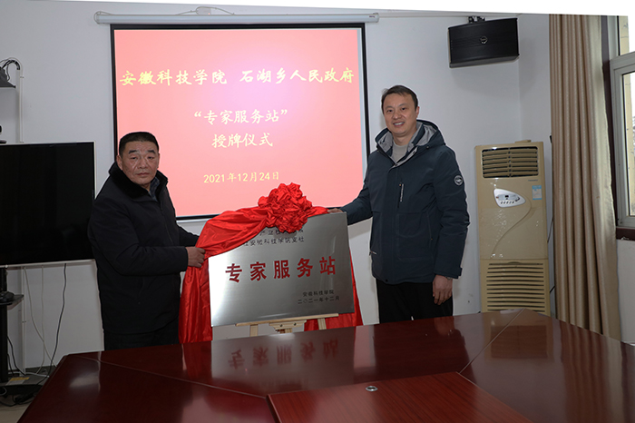 12月24日上午,“安徽省牛羊产业技术体系 九三学社乐动网页版登录入口_乐动网页版(中国)支社专家服务站”揭牌仪式在固镇县石湖乡人民政府三楼会议室举行。校党委宣传(统战)部副部长、团委书记黄立义,九三学社乐动网页版登录入口_乐动网页版(中国)支社主委程郁昕,安徽省牛羊产业技术体系首席专家、动物科学学院副院长华金玲,固镇县石湖乡党委书记王贡献,乡长曹怀龙,固镇县汉邦牧业有限公司董事长徐淼等出席揭牌活动。仪式由石湖乡人大主席殷献利主持。