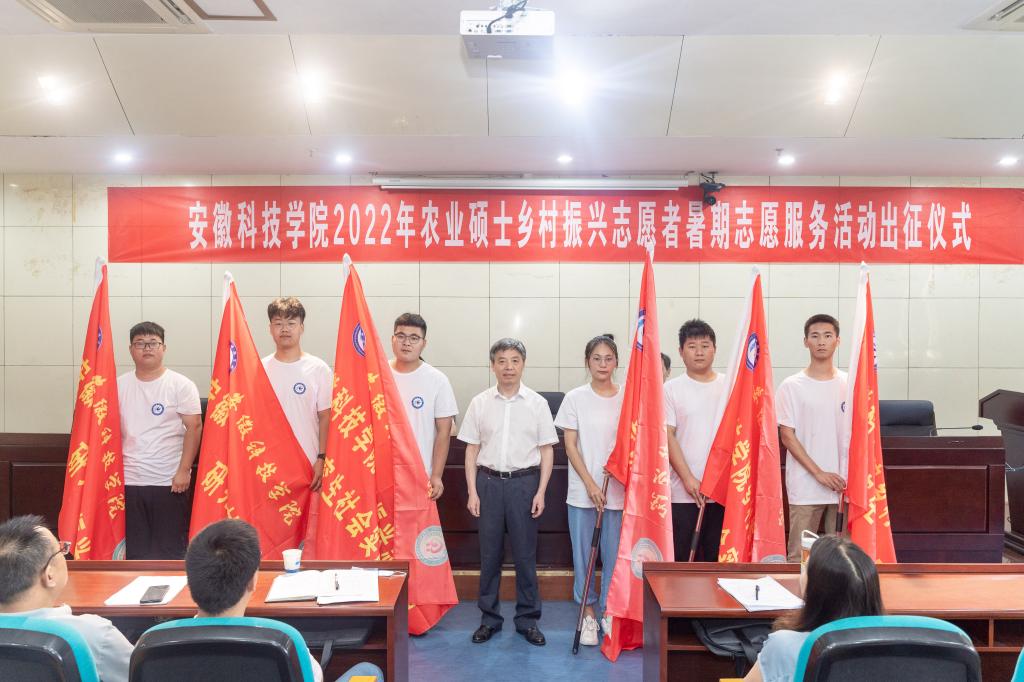 7月2日上午,学校“青春志愿行,助农促振兴,献礼党的二十大”2022年农业硕士乡村振兴志愿者暑期志愿服务活动出征仪式在凤阳校区图书馆一楼报告厅隆重举行。校党委书记蒋德勤,党委副书记、院长李震,党委委员、副院长李升和出席仪式,研究生培养学院院长、分管副院长、带队教师、研究生处工作人员和全体研究生志愿者参加出征仪式。出征仪式由李升和主持。