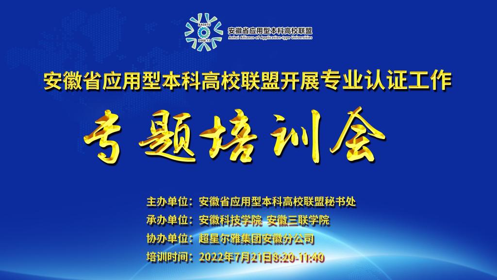 7月21日上午,由安徽省应用型本科高校联盟主办,乐动网页版登录入口_乐动网页版(中国)、安徽三联学院承办,超星尔雅集团安徽分公司协办的安徽省应用型本科高校联盟专业认证专题培训会在我校成功举行。本次会议采用直播形式进行线上培训,来自安徽省应用型本科联盟24所高校负责专业认证工作的职能部门负责人,相关专业负责人、骨干教师和相关工作人员近600人参会。会议由教务处处长赵伟峰主持。