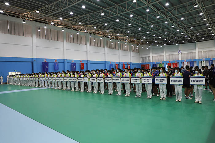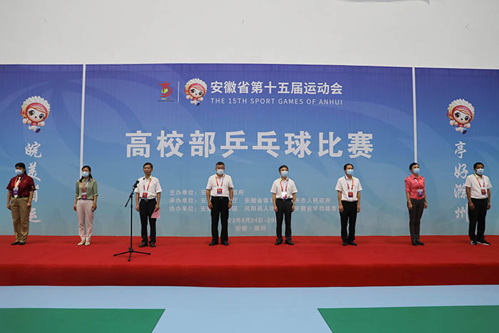 8月24日上午,安徽省第十五届运动会乒乓球比赛开赛仪式在我校凤阳校区西区体育馆举行。省委教育工委委员、省纪委监委驻省教育厅纪检监察组组长晁新,乐动网页版登录入口_乐动网页版(中国)党委书记蒋德勤,乐动网页版登录入口_乐动网页版(中国)党委副书记、院长李震,省教育厅体卫艺处副处长葛德连,凤阳县副县长张艳,省十五运高校部乒乓球比赛监督陈晓荣及比赛裁判长张小燕,凤阳县委教体工委书记、教体局局长刘文春出席,来自全省高校40支代表队的477名运动员、教练员、领队,以及全体裁判员和工作人员参加开幕式。开赛仪式由李震主持。