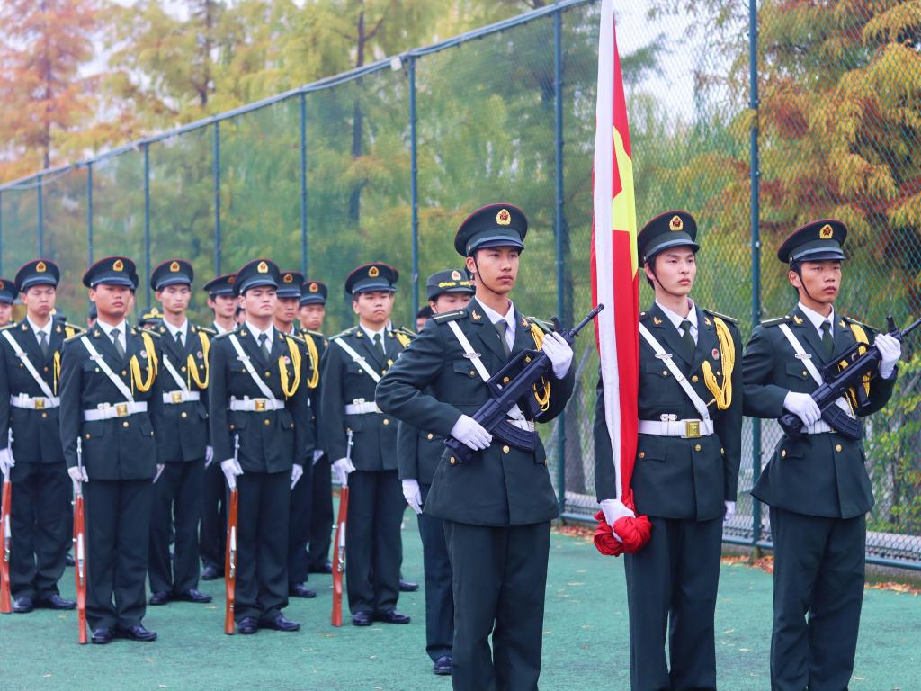 迎着初冬的清凉,校旗队缓缓入场,坚定的眼神,有力的步伐,显示升旗仪式的庄严与肃穆。