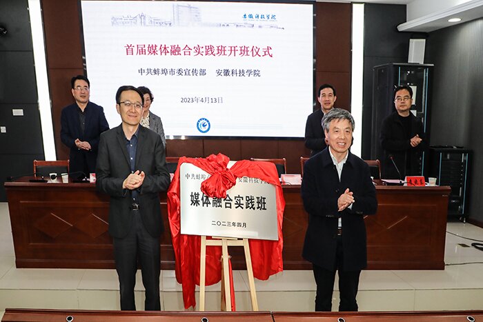 开班式上,赵伟峰首先介绍了媒体融合实践班的遴选组建及课程安排情况。他指出,此次媒融班是我校积极探索应用型人才培养模式的新举措,是校地双方立足国家发展战略合作的新成果,希望这种联通校地、产教一体的卓越人才培养模式成为学校和蚌埠市融合发展的桥梁,通过不断深化合作,逐步构建综合性“产教融合”人才培养平台。