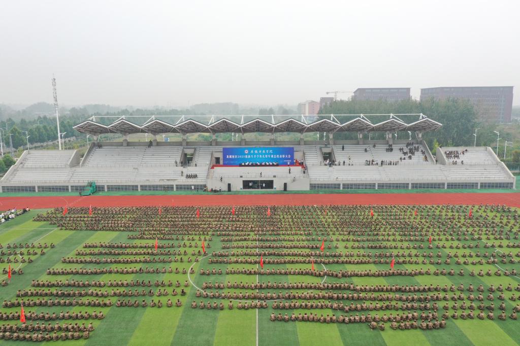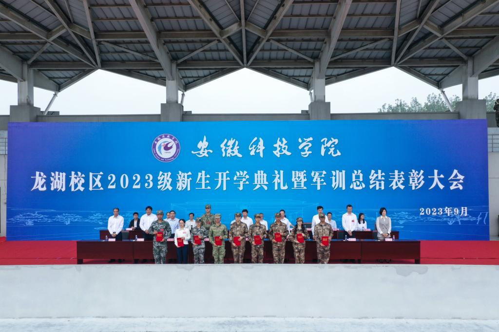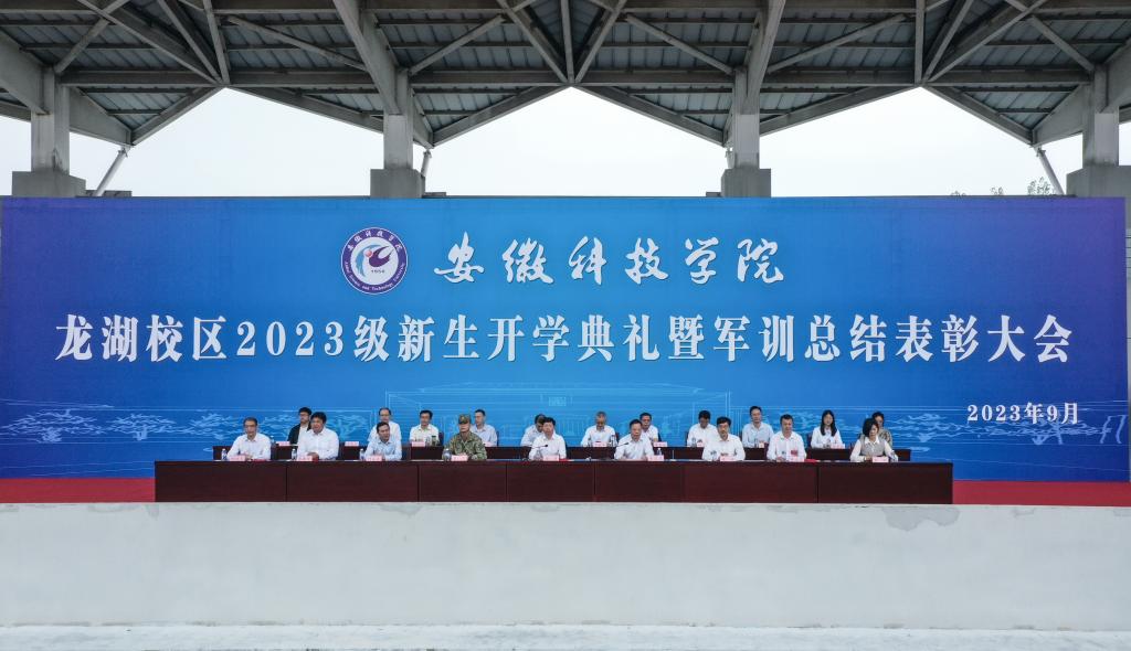 9月28日上午,我校龙湖校区2023级新生开学典礼暨军训总结表彰大会在南田径场举行。校党委书记时伟,党委委员、副院长黄远友,陆军装甲兵学院蚌埠校区作战保障系战斗支援教研室少校、龙湖校区军训团团长赵飞等出席大会并在主席台就座。大会由黄远友主持。