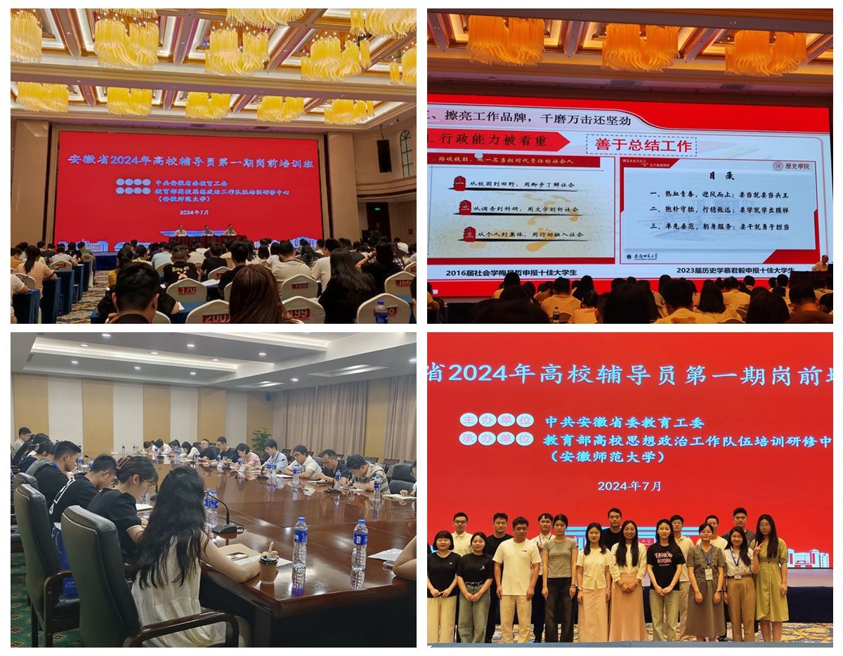 7月15日至20日,由中共安徽省教育工委主办、教育部高校思想政治工作队伍培训研修中心(安徽师范大学)承办的安徽省2024年高校辅导员第一期岗前培训班在芜湖成功举办,来自全省本专科高校的380名辅导员参加培训。我校近两年新进18名辅导员参加培训。