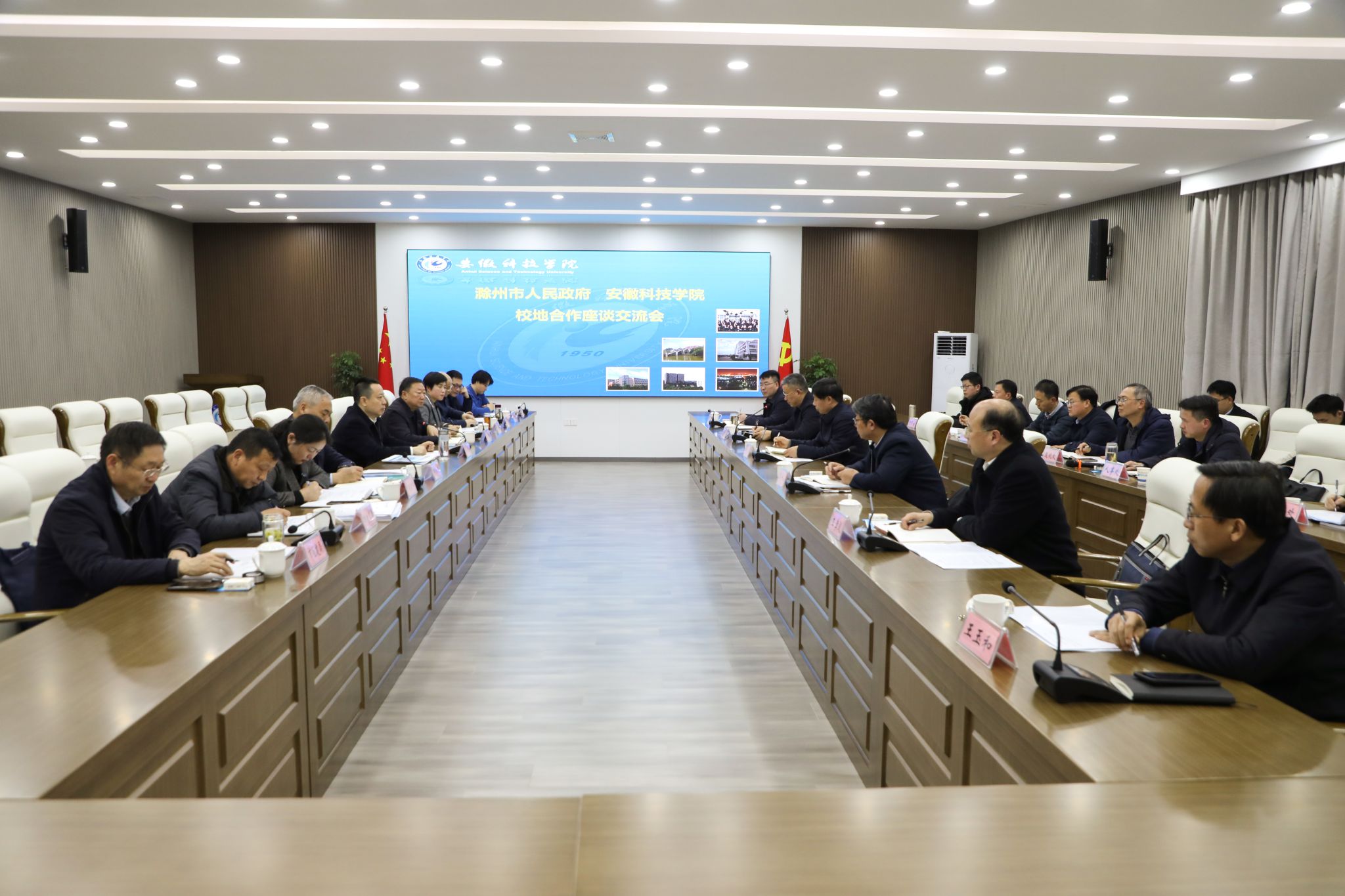 3月3日下午,我校与滁州市人民政府举行校地合作座谈交流会。滁州市委副书记、市长胡春华,市人大常委会副主任苏虹及市直有关部门、南谯区政府负责人,校党委书记时伟,党委副书记、院长李升和,党委副书记曹付忠,党委委员、副院长王孝义,党委委员、副院长赵伟峰,党委委员、副院长王玉和及相关部门负责同志参加座谈交流会。会议由时伟主持。