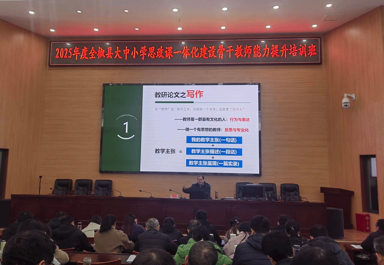 为全面落实习近平总书记关于学校思政课建设的重要指示批示精神,进一步加强新时代大中小学思政课建设,着力打造一支政治强、情怀深、思维新、视野广、自律严、人格正的中小学思政课教师队伍,11月28日至12月2日,由乐动网页版登录入口_乐动网页版(中国)、全椒县教育体育局联合主办,马克思主义学院承办的2025年度全椒县大中小学思政课一体化建设骨干教师能力提升研修班在全椒县委党校举办。全县106名思政课骨干教师参加本次研修。全椒县教体工委副书记、县教体局副局长冯正云等出席开班仪式,马克思主义学院党总支书记杨仕勇主持。