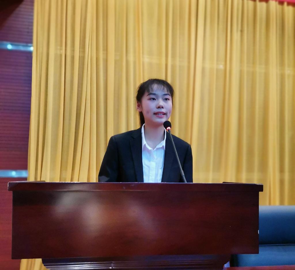 党总支书记蔡为青作总结讲话,她首先表达了对新生们迈入大学这神圣的殿堂的祝贺,她强调同学们要树立远大理想,丰富内心世界,培养学习兴趣,增强集体观念,遵规守纪,诚信做人,文明做事,时刻注意安全,最后,她引用了北大校长王恩哥的话“结交两个朋友,一个是运动场,一个是图书馆作为结束语,她鼓励大家多到运动场,锻炼身体,强健体魄;多到图书馆博览群书,不断的充电、蓄电。”同时,她强调同学们要诚信做人、坚定信念,志存高远;专注求学,筑牢根基;端正态度,刻苦学习。