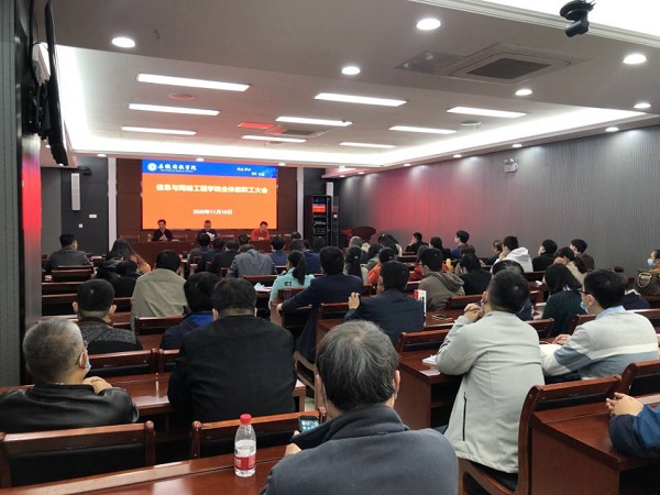 11月18日下午,信息与网络工程学院在西辅楼111会议室召开全体教职工大会,学院党总支书记王振其、院长余宏杰、正处级组织员周向群参加会议,会议由王振其主持。