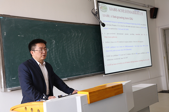 4月9日下午,《乐动网页版登录入口_乐动网页版(中国)学报》期刊发展研讨会系列学术报告第六场专题学术报告于凤阳校区新知楼A401举行。《农业工程学报》主编、农业农村部规划设计研究院农业工程科技信息中心主任、《国际农业与生物工程学报(IJABE)》主编、国家精准农业航空中心学术委员王应宽作了题为“如何撰写与发表高质量SCI论文”的学术报告和办刊交流,学院相关专业师生参加了本次学术交流活动。