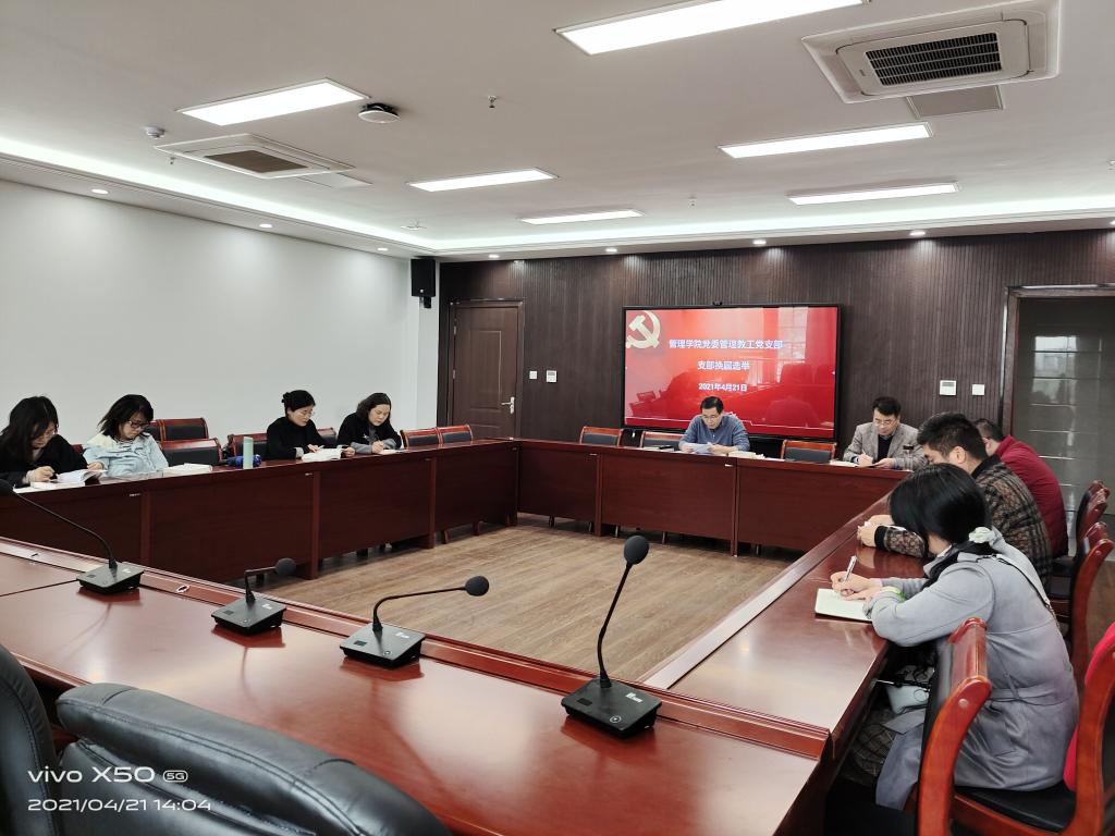 根据学校《中共乐动网页版登录入口_乐动网页版(中国)委员会组织部关于认真做好基层党支部换届选举工作的通知》(组字〔2021〕12号)工作安排,管理学院党委所属各党支部有序组织召开党员大会,顺利完成党支部换届选举工作。学院全体领导班子成员分别参加各党支部换届大会,对各党支部换届工作给予了有力指导。
