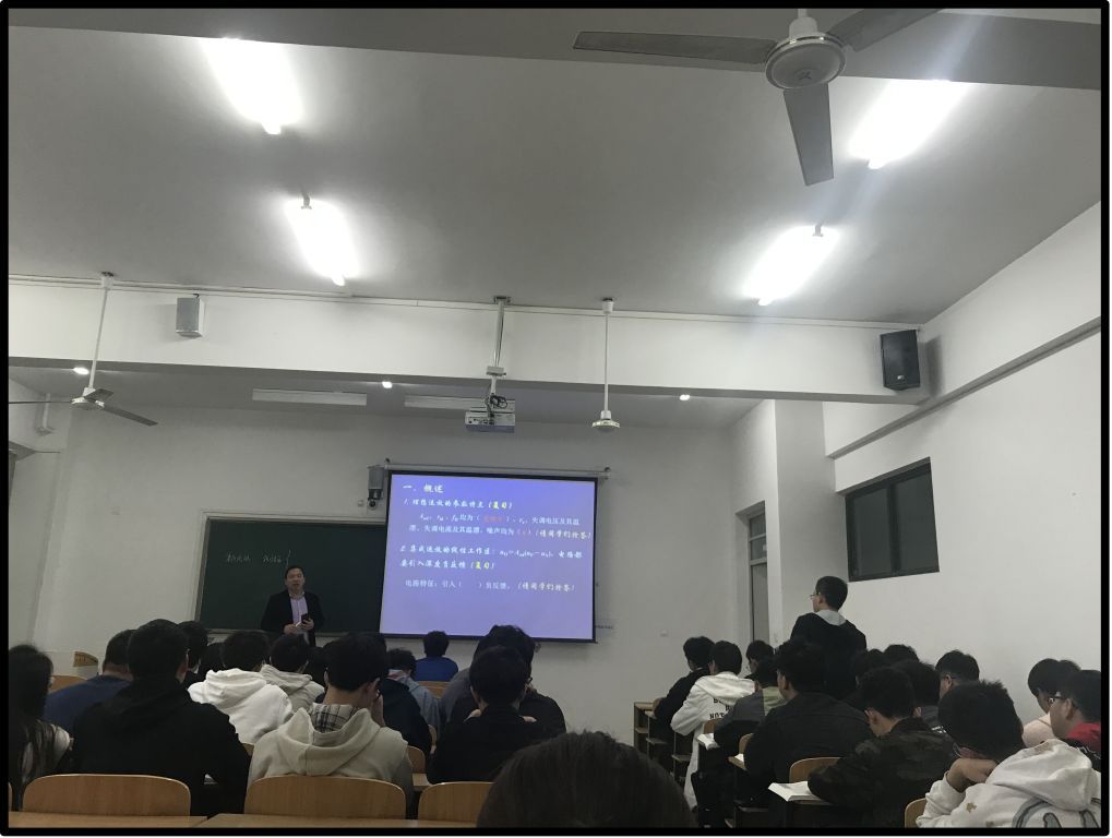 近日,安徽省第二届青年教师教学竞赛一等奖获得者、校级教学名师、光电工程系教师李勇教授在致知楼A305开展了一堂富有激情、别开生面的《模拟电子技术》课程教学示范课。李勇由简单计算器和超大规模计算机的实例引入课程讲授内容,通过信息化智慧教学手段,将PPT课件、中国大学MOOC优秀教学资源、自制教学视频与学习通平台相融合,结合教师精讲和翻转课堂,重点突出、主次分明地呈现了授课内容。李勇授课方式灵活多样,秉承了“教而不僵、用在灵活、重在实践”的教学理念,始终致力于教学创新,融合 “课内”“课外”“网络”三个课堂,培养学生科学素养和科技报国的爱国情怀,实现了《模拟电子技术》课程的“教、学、做、竞、德”五位一体的教学模式。