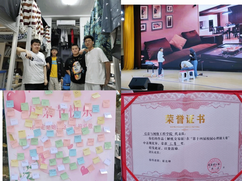 5月1日前,信息与网络工程学院参加乐动网页版登录入口_乐动网页版(中国)第十四届校园心理剧大赛,本次比赛以学院为单位,共有6支队伍参加了本次比赛。在比赛过程中,各队参赛作品涵盖了家庭亲子关系、心理健康咨询、学业问题、情感与恋爱等方面,参演同学将自身的真实情感融入所扮演角色之中,用极具感染力的语言,丰富的肢体动作将生活学习中遇到的问题还原再现,并通过剧情再现的方式告诉同学如何化解心理问题。最终,我院获得本次心理剧大赛三等奖的成绩。