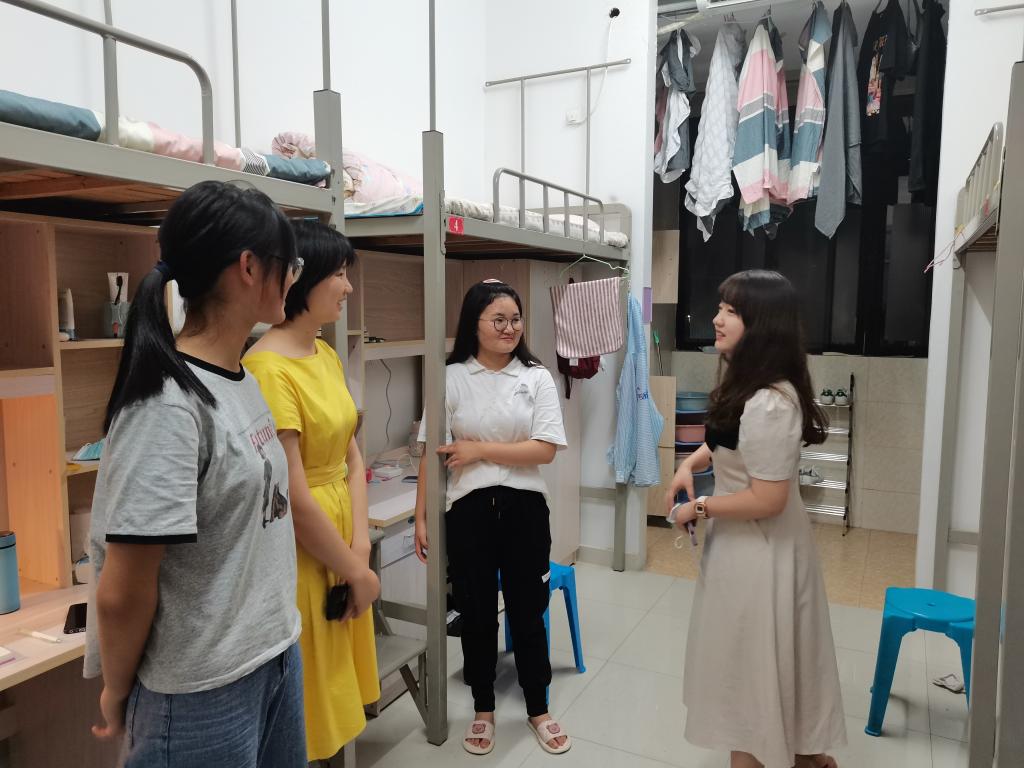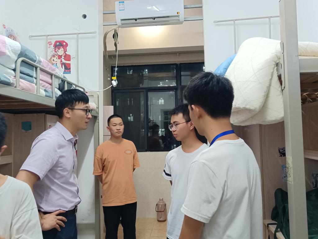 当晚,各辅导员又专门深入每一个新生班级宿舍走访,再次转达学院对新生同学们的关心。