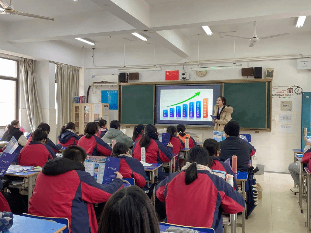 交流会上,团队首先播放了安科的宣传片,向同学们介绍了安科的历史渊源、教学环境、校园活动等。同学们都对安科的环境非常向往,随后汤佳慧也分享了她高三时的点滴以及鼓励同学们努力学习考上满意的大学,她给大家分享了她考取乐动网页版登录入口_乐动网页版(中国)后的个人成长变化,取得的成绩与收获,并为大家展示她在大学中的活动主持照片和视频等,同学们对于“汤学姐”描述的大学生活十分好奇,踊跃举手提问,汤佳慧就大学专业、住宿就餐、大学活动、各类奖助贷政策等问题为大家进行了详细的解答与介绍。