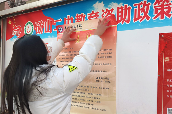 为加强我校与优质生源学校的沟通交流,增进考生对我校的了解,提高乐动网页版登录入口_乐动网页版(中国)的知名度和社会认可度,增进在校生与高中母校的感情,培养大学生的社会实践能力。1月16日下午,机械工程学院工业设计211班段梦茜、外语学院翻译213班刘荣荣两位学子赴砀山县第二中学开展“我回母校报喜讯”寒假专项社会实践活动。