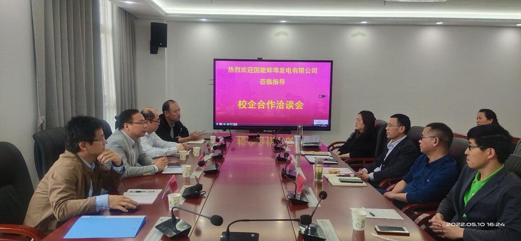 夏显明就学院师资力量、学科建设、实验平台、招生就业、学生考研率、校企合作模式等方面进行了详细介绍。希望借助国能蚌埠发电有限公司和北京智芯融装备制造有限公司先进的平台和丰富的市场资源,开展多方位合作,共建校企联动的应用人才培养模式,期待校企双方加强合作交流,丰富合作形式和内容,提升合作效果。骆海邦强调要继续加强交流,挖掘校企合作切入点、拓宽校企共育人才面,通过接触产生共建的成果,进而实现学校、企业、学生三方共赢。