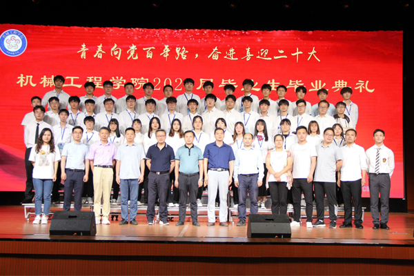 昔来兮,桃李累累;今往兮,杨柳依依。2022年6月14日晚,机械工程学院党委在大学生活动中心隆重举办“机械工程学院2022届毕业生毕业典礼暨欢送晚会”。学院党委书记、院长陈丰,正处级组织员张严政,党委副书记、纪委书记张程,副院长张华、乔印虎,副处级辅导员开金苗,教学秘书苑风霞,党政办公室副主任王飞,机械设计制造工程系主任缑瑞宾,汽车工程系主任刘春辉,各系副主任、党支部书记,2022届毕业生学业导师,全体辅导员,全体在校毕业生及部分非毕业班同学代表参加。机械工程学院2022届毕业生毕业典礼和欢送晚会分三个阶段进行,依次为毕业典礼、2022级省级优秀毕业生颁奖仪式、毕业生欢送晚会,毕业典礼和颁奖仪式由张程主持。