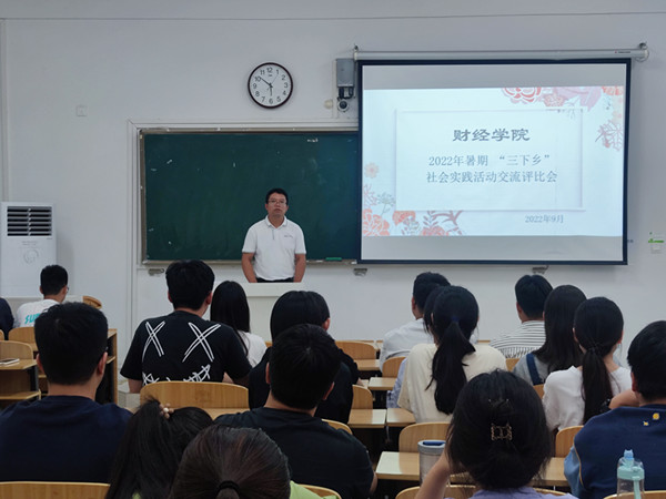 为总结交流社会实践经验,推广先进做法,加强团队交流,谋划下一阶段学生工作,财经学院团委于9月9日下午在致知楼C103教室召开暑期社会实践交流评比暨期初学生干部会议。学院党委书记杜小明应邀出席会议,各班级团支书、社会实践团队负责人参加会议。会议由学院团委书记薛枫主持。
