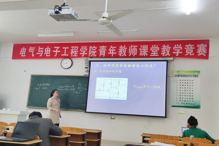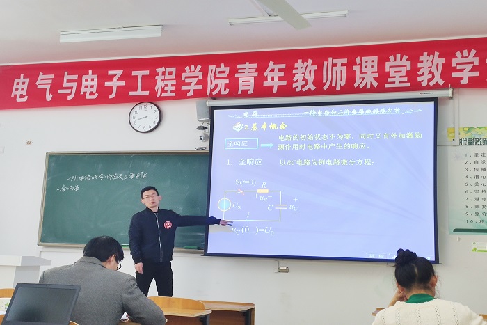 为加强青年教师队伍建设,促进青年教师全面提高教学水平、不断优化课堂教学,电气与电子工程学院于2022年10月15日开展了青年教师课堂教学竞赛活动。由学院五位教学经验丰富的学科带头人和骨干教师担任评委,全体初级职称青年教师参加。