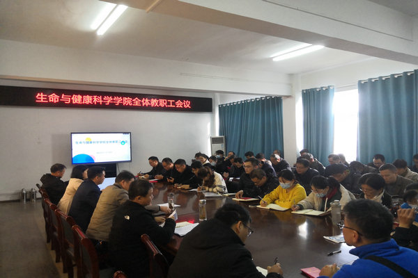11月16日下午,生命与健康科学学院在学院会议室召开全体教职工会议,部署近期工作和集中学习党的二十大精神,学院党委书记詹学文,党委副书记、副院长(主持工作)孙玉军,党委副书记、纪委书记彭丽萍,党委委员、副院长钱立生出席会议。会议由詹学文主持。