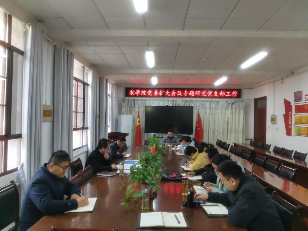 3月3日下午,农学院在学院会议召开党委扩大会专题研究部署党支部工作,学院党委委员、组织员及党支部书记参加会议,会议由农学院党委书记何世潮主持。