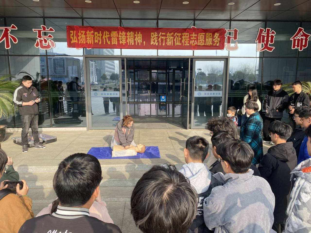 同学们认真聆听专题讲解,仔细观摩操作指导,积极参与模拟体验,现场学习氛围浓厚。建筑学院青年志愿者协会成员汪骏说到:此次活动通过室内演讲和室外实际操作让我受益匪浅,了解到了更多关于急救的知识并且修正了一些传统观念上的认知错误,在遇到了一些突发状况时有着一定的能力去面对,更加深刻了解到黄金四分钟的意义。室外心肺复苏实践让我体会到了作为护士的严苛标准以及他们身上的艰辛,受到了极大的感触。我们作为青年学生应该在工作、生活中乐于奉献,有更高的思想自觉和责任担当,养成奉献习惯,做到乐于奉献、甘于奉献、勇于奉献。