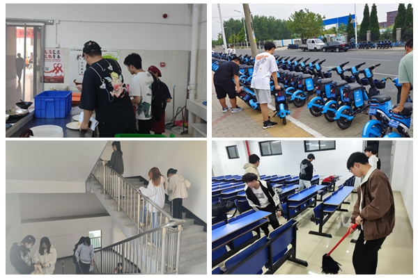网络工程专业各班级团支部组织开展校园清扫志愿服务活动。学生志愿者们被分成若干小组,负责不同的区域,开展义务劳动活动。学生们有的负责教学楼及实验楼的卫生打扫、桌椅摆放等;有的对草坪里的落叶、杂草及操场上的垃圾进行清理;有的在食堂里协助保洁阿姨清洁餐盘回收工作台、就餐桌椅以及筷子橱柜等每个角落的卫生工作,用自己一丝不苟的态度展现着对志愿服务工作的热情。