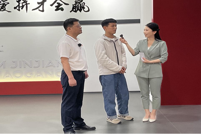 现场,学生代表汪礼伟接受了主持人的采访,喜悦之情溢于言表,他很自豪地说:“我来自乐动网页版登录入口_乐动网页版(中国)食品工程学院,今天学校组织我们参与此次活动,使我受益匪浅,小岗盼盼食品有限公司规模大、产品线全、研发实力强,让我更加了解了食品产业的工作环境,我也希望能有机会留下来。”