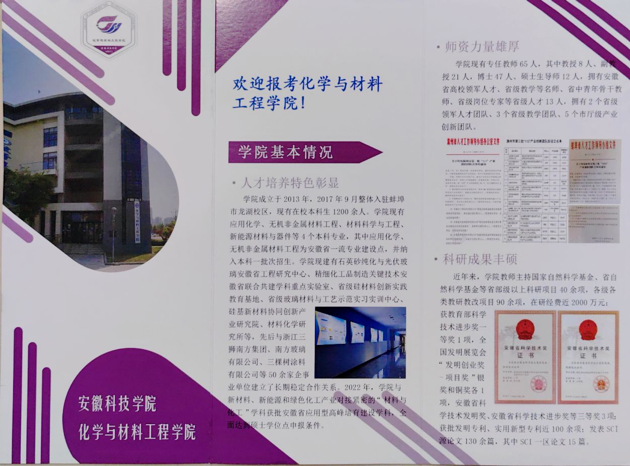 为积极应对新旧高考志愿填报模式转变可能带来的生源质量变化挑战,化学与材料工程学院在高质量完成学校下达的招生宣传任务基础上,学院还制作了“欢迎报考乐动网页版登录入口_乐动网页版(中国)化学与材料工程学院”H5易企秀,组织师生利用微信群、QQ群宣传;学院印制了“欢迎报考化学与材料工程学院”纸质宣传册子,随同学校的宣传材料一并发放,主动向有化学及材料类报考意愿的考生及家长介绍学院,吸引考生关注学院。
