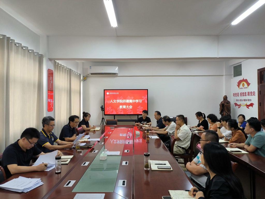 为深入学习领会习近平新时代中国特色社会主义思想和党的二十大精神,贯彻落实习近平总书记关于教育的重要论述和教师队伍建设的重要指示批示精神,根据教育部及省委教育工委、省教育厅有关师德师风建设通知要求,推深做实师德集中学习教育及专项整治工作,全员全方位全过程强化高尚师德师风养成,人文学院于7月8日召开师德集中学习教育大会。会议由学院党委副书记、副院长李晓东主持,人文学院全体教职工参加。