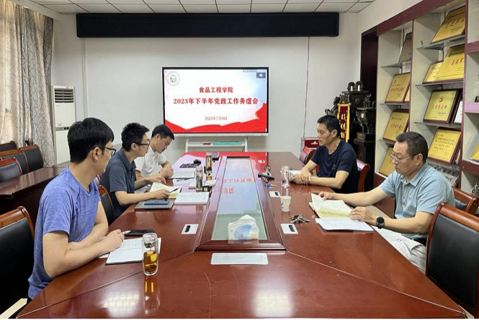 7月8日下午,食品工程学院于学院会议室召开2023年暑期工作会议,对上半年各项工作进行阶段性汇报和总结,并部署暑期重点工作。学院全体教职工参加会议,会议由学院党委书记付光玺主持。
