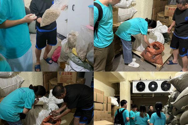 在活动中,团队成员与种植户进行深入交流,了解到白芍的种植月采摘基本实现了机械化,解放了双手,生产效率得到大幅提升。团队成员初步了解农业机械在中药种植过程中大有可为,很大程度上推动中药材的发展。紧接着,团队成员来到中药材种植户的药材存储库房,农户向成员介绍了白芍存储的温度、湿度等技术要求,确保药材不会因存储导致药效流失。