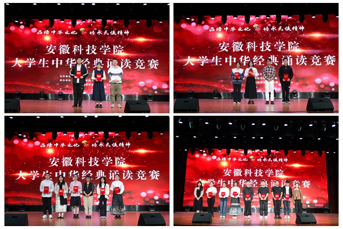 为贯彻《教育部等九部门关于开展第26届全国推广普通话宣传周活动的通知》的文件精神,助力推广普通话,发挥语言文字的浸润、助力作用,激发青年大学生奋斗精神与爱国情怀,9月25日下午,由教务处主办、人文学院承办的乐动网页版登录入口_乐动网页版(中国)大学生中华经典诵读竞赛决赛在大学生活动中心成功举行。蚌埠市广播电视台主持人吕彪,凤阳县融媒体中心新闻部编辑记者胡松、马克思主义学院教授王凤杰、学生处康佳蓉、人文学院专业课教师曹宋艳担任此次比赛评委。