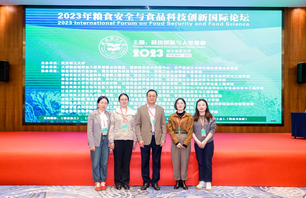 为贯彻落实党的二十大精神和全国粮食和和物资储备工作会议精神以及“藏粮于地、藏粮于技”战略,推动粮食产业链、价值链、供应链“三链协同”,夯实粮食加工储藏科技支撑,提高粮食安全保障能力,促进粮食营养高值化发展和粮食科技成果推广转化应用,由中国农业大学食品科学与营养工程学院、河南工业大学粮油食品学院、安徽农业大学茶与食品科技学院、乐动网页版登录入口_乐动网页版(中国)食品工程学院等单位协办的“2023年粮食安全与食品科技创新国际论坛大会”于10月20日-22日在湖北武汉召开,我校食品工程学院院长杜传来和院青年教师杨丽萍、于鲲、李培燕、杨玉玲应邀参会。