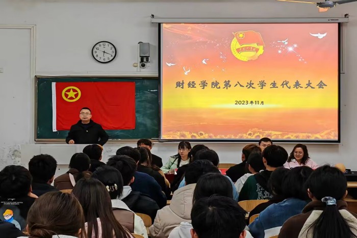 11月17日下午,财经学院第八次学生代表大会在龙湖校区致知楼A108教室顺利召开。财经学院党政领导和有关教师出席会议。来自学院各学生组织和班级的学生代表共70人参加会议。会议由财经学院学生会秘书长尹成超主持。