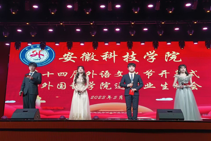 5月10日晚,我校第十四届外语文化节开幕式暨外国语学院送毕业生晚会在校大学生活动中心举行。校国际交流与合作处副处长陈德用、农学院党委书记何世潮以及外国语学院全体党政领导出席开幕式,外国语学院全体辅导员和在校全体学生参加开幕式。