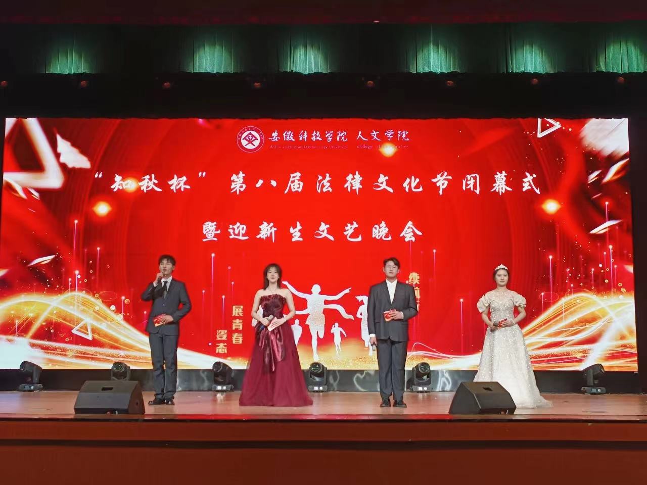 12月3日晚,人文学院在大学生活动中心举办“知秋杯”第八届法律文化节闭幕式暨迎新生文艺晚会。人文学院党政领导、教师代表、全体辅导员出席晚会,2023级全体同学、学生会工作人员和部分老生代表参加。