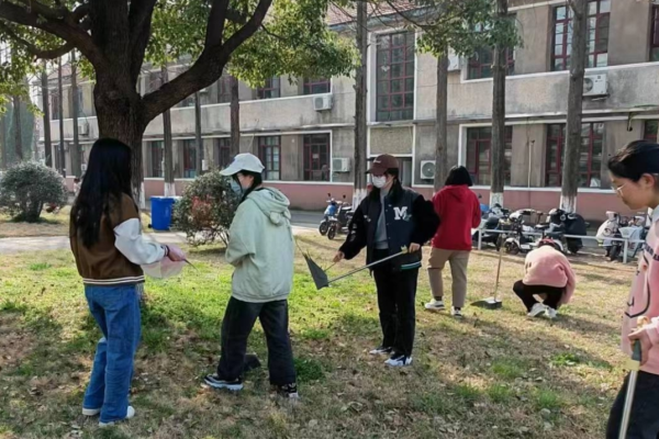 5月12日至14日,翻译222、223两个班级开展了“文明校园,我来维护”劳动区清扫劳动实践。50余名学生,手持工具在图书馆前、办公楼后的广大区域,清理草坪的垃圾和杂物,劝诫来往行人的不文明行为,体会环卫工人的日常劳动。