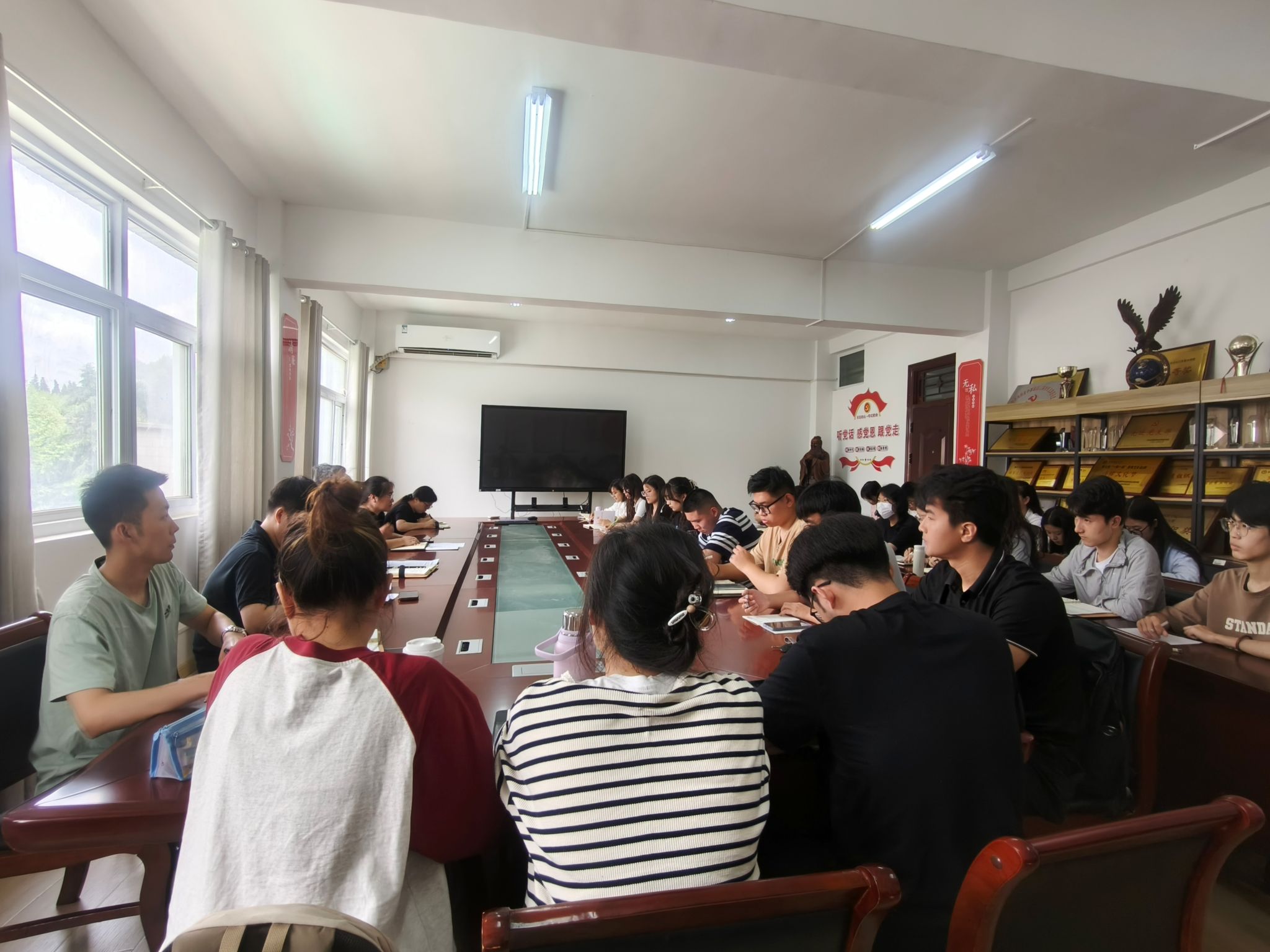 为贯彻落实学校党委有关党纪学习教育的部署要求,6月11日中午,人文学院党委在学知楼324会议室开展党纪学习教育主题党课活动。学院正处级组织员张严政和党委副书记、纪委书记李沙娜出席,汉语言文学专业学生党支部与法学专业学生党支部全体党员参加。